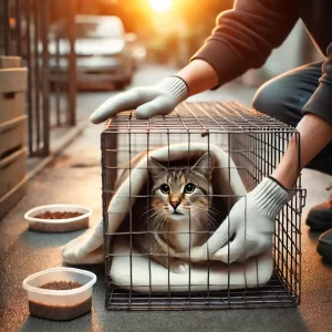 Menggunakan jebakan khusus yang aman bagi kucing, seperti perangkap jaring atau kandang jebakan.